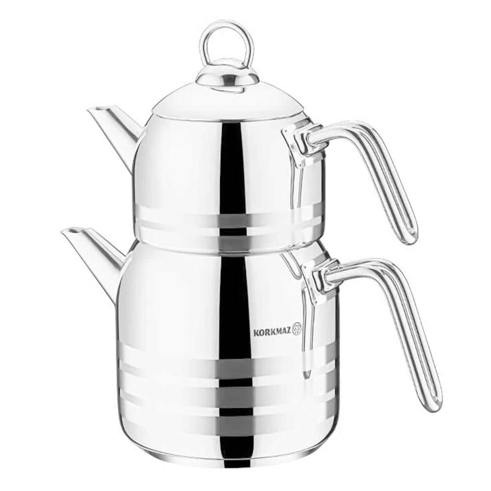 براريد شاي ستيل كوركمازفولاذ مقاوم للصدأ 18/10 Cr-Niقاعدة من ثلاث طبقات .سطح قاعدة بعرض 140 ممتأتي بغطاء لكل براد .سهلة الاستخدام بمقابضها المصنوعة من...
