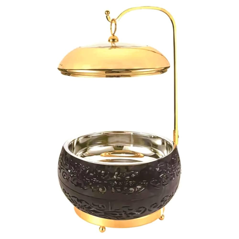سخان طعام بتصميم جمبل وأنيق آمنيحتوي على وعائين وعاء لتسخين الطعام وعاء للطعام من الاستل استيل 304 غير قابل للصدأغطاء علوي بلون الذهبي والكروم الللامع...