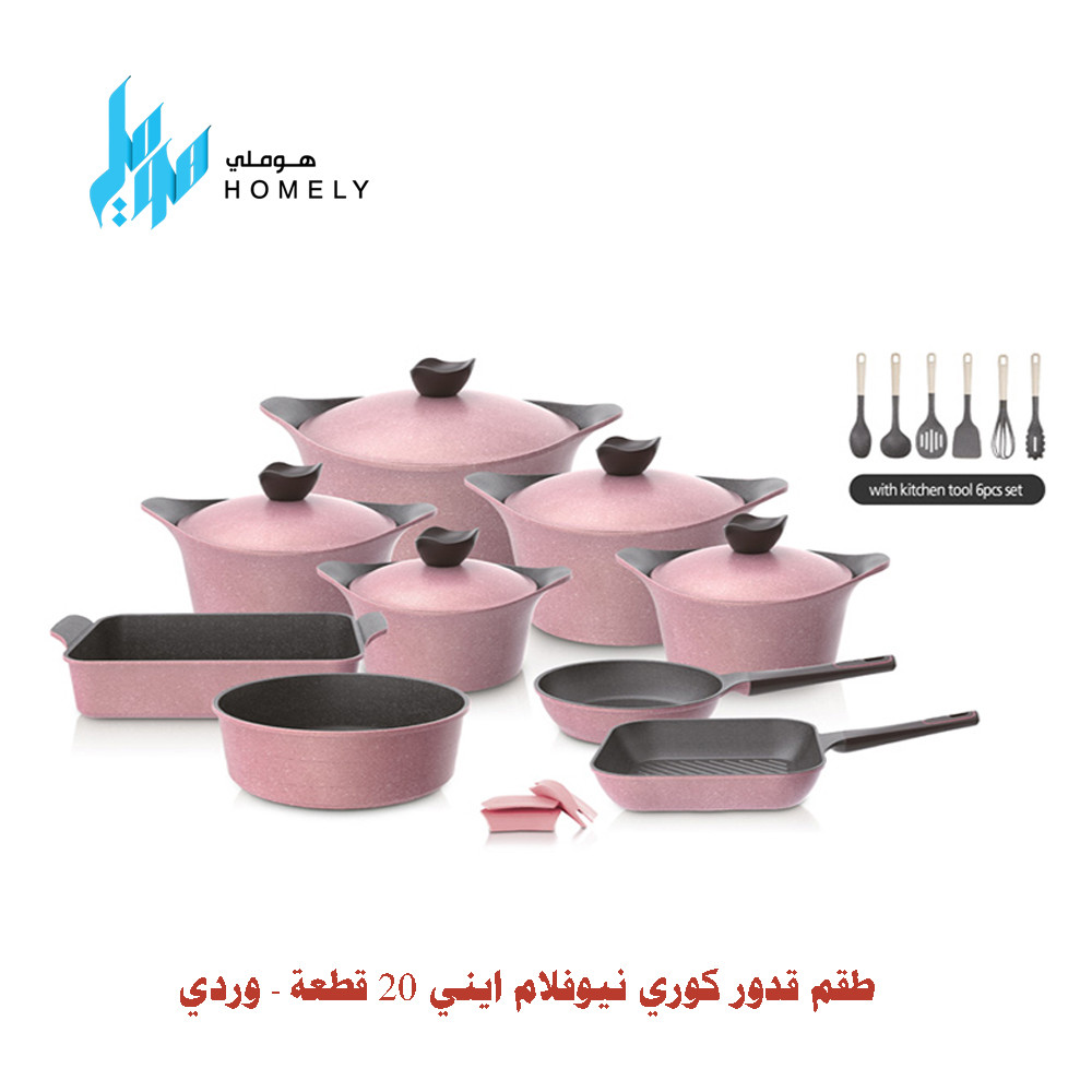 طقم قدور كوري نيوفلام ايني 20 قطعة – وردي