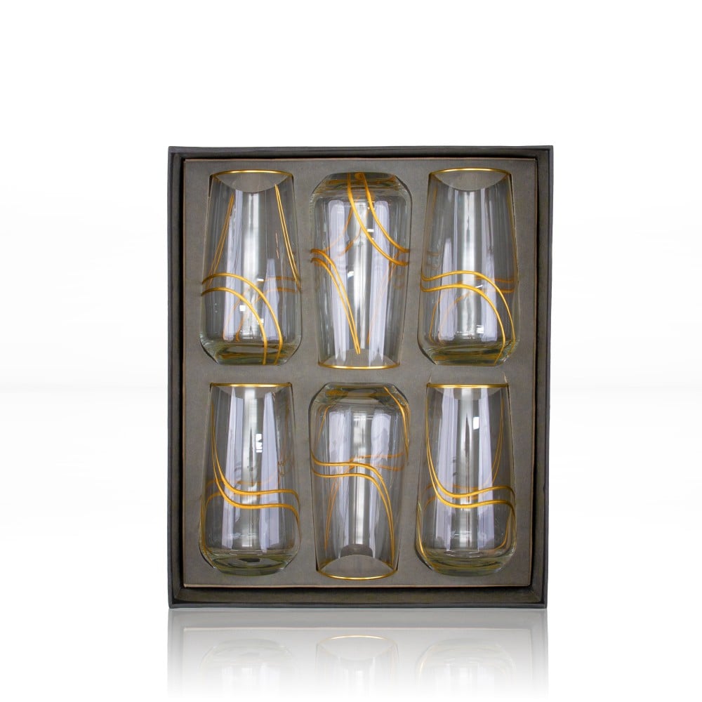 طقم كاسات عصير .زجاج شفاف مع لمسات باللون الذهبي .جسم وقاعدة بسماكة عالية .عدد 6 كاسات .صناعة تركية ....