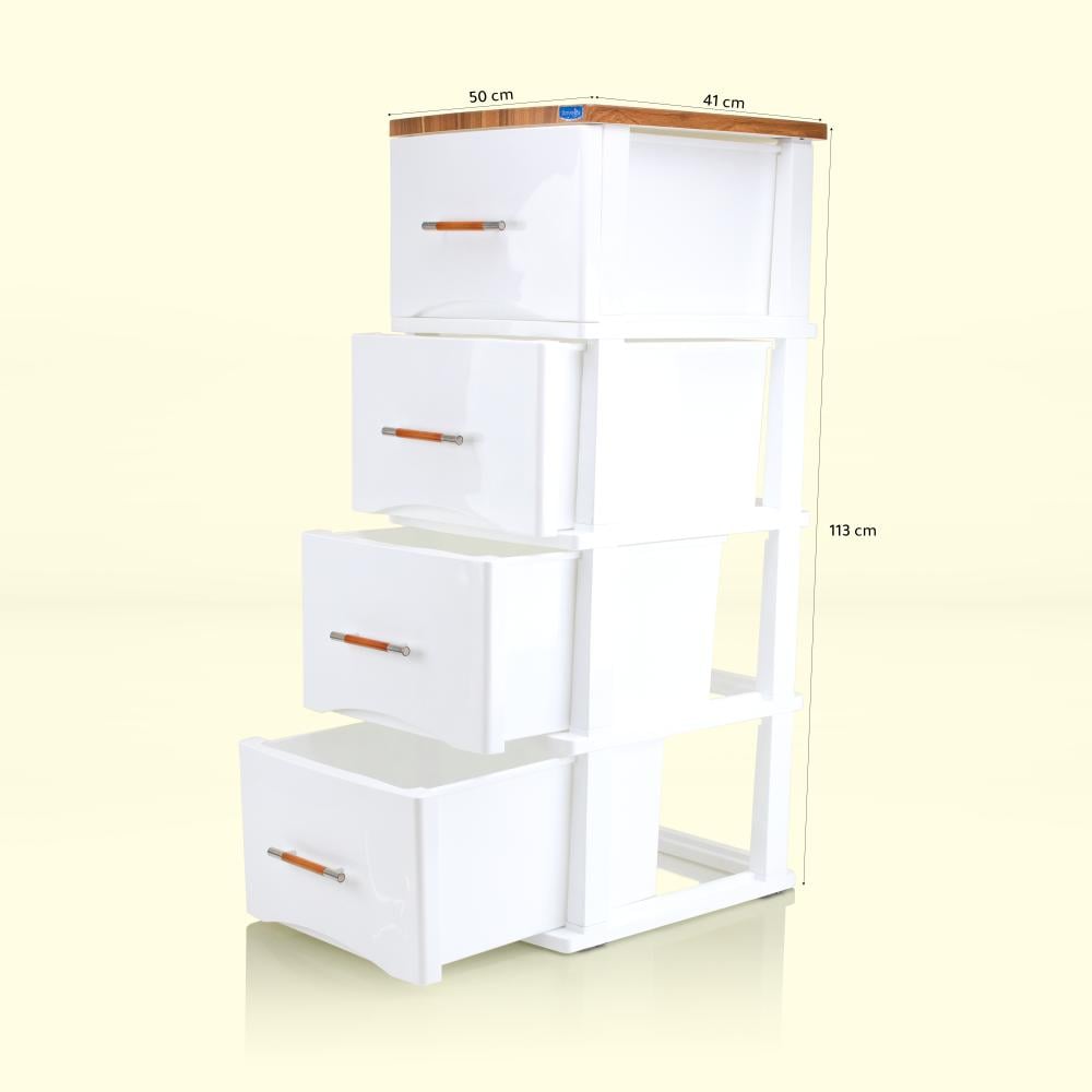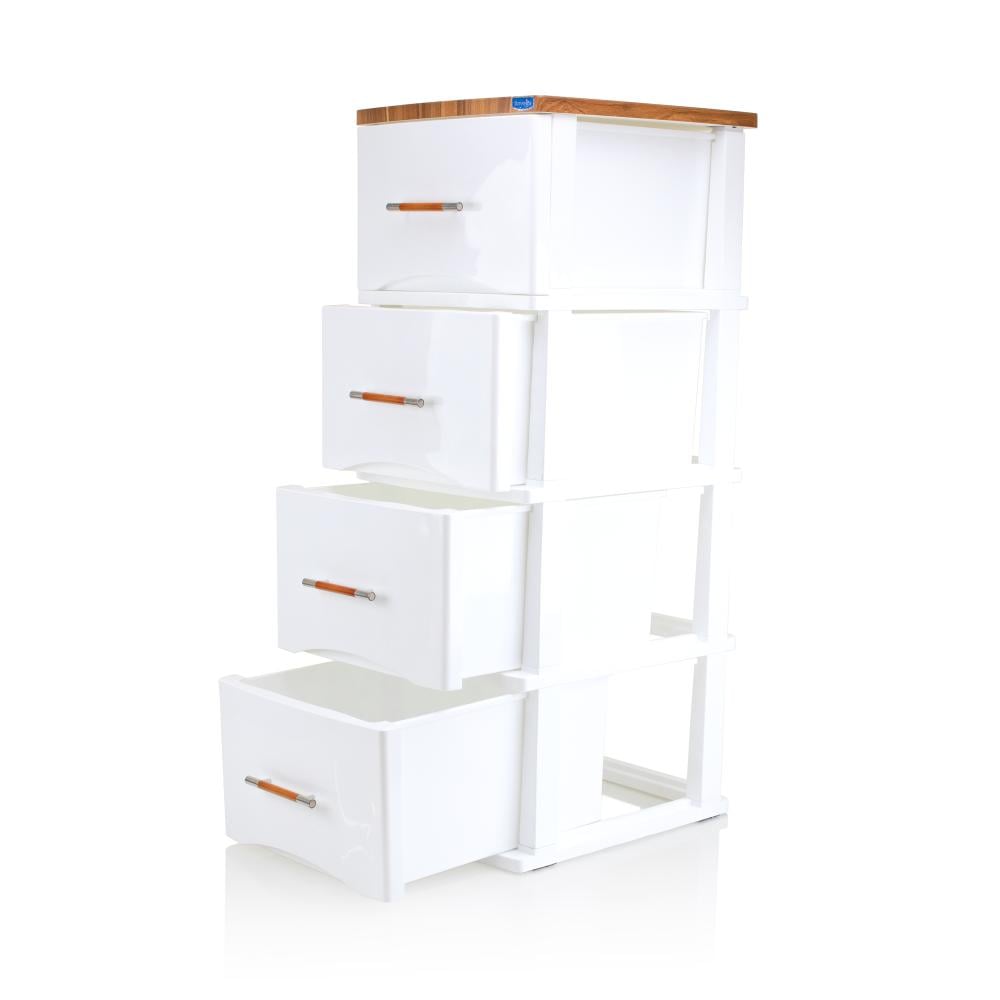 ادراج بلاستيك 4 دور ابيض مع خشبي