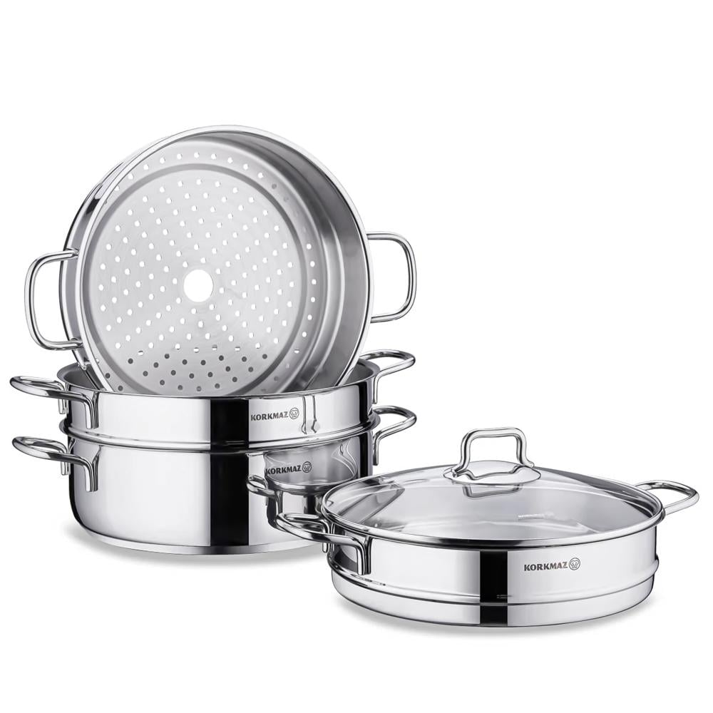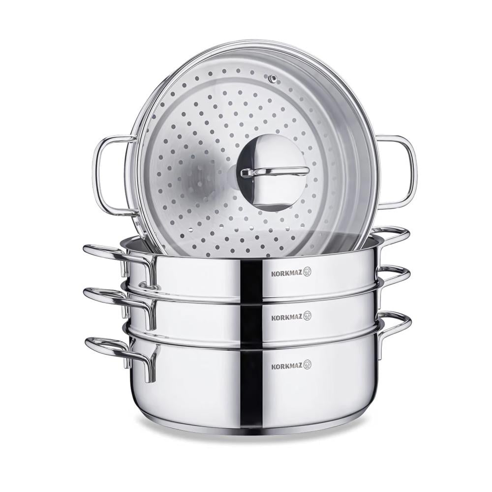 قدر منتو أستيل تركي.تفاصيل المنتج : مصنوع من الاستيل المقاوم لصدأ 18/10Cr-Ni.يعطي توزيعا للحرارة بشكل متساوي وسريع وذلك بفضل تصميم القاعدة .تأتي ...