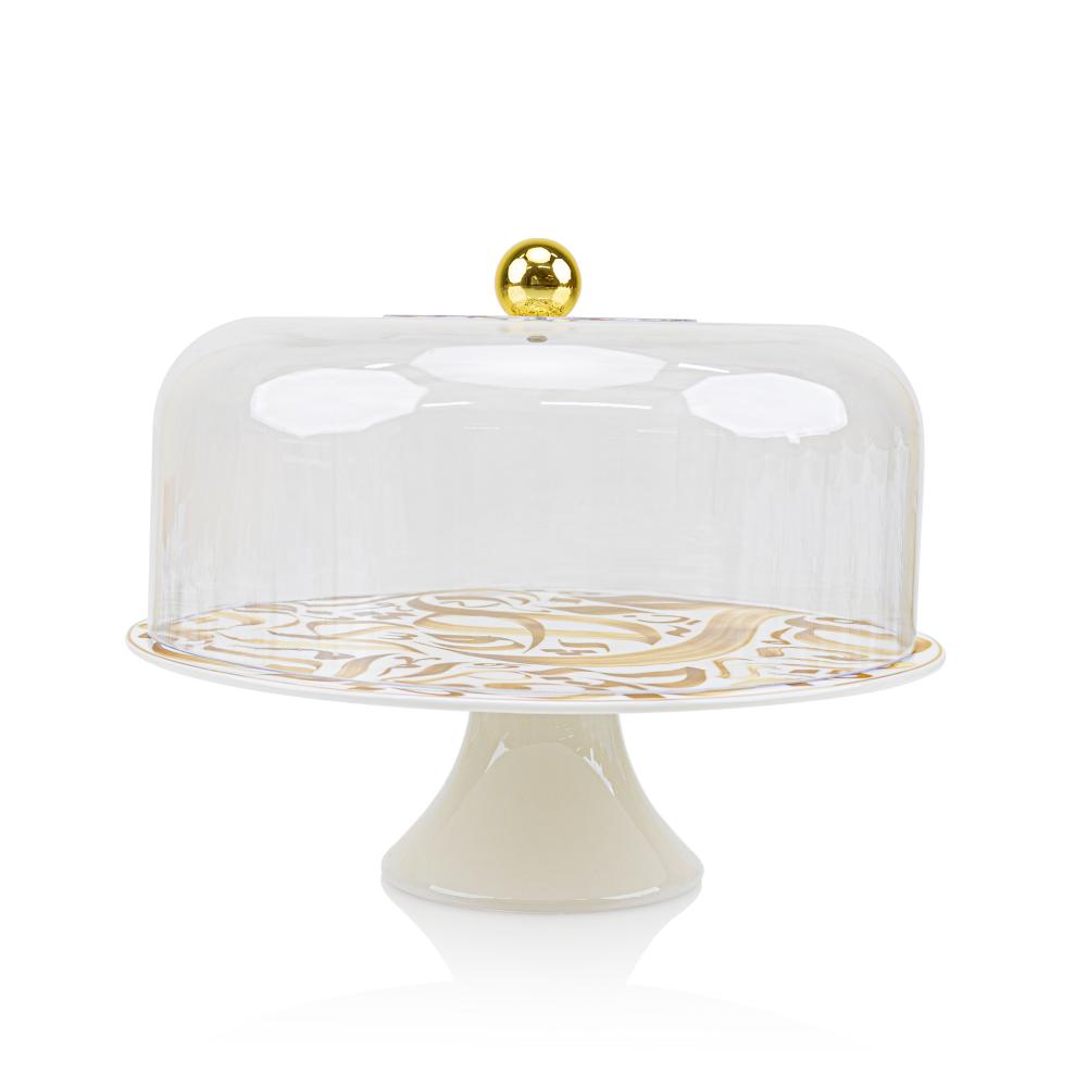 صحن كيك بقاعدة برسلين مع غطاء اكرليك