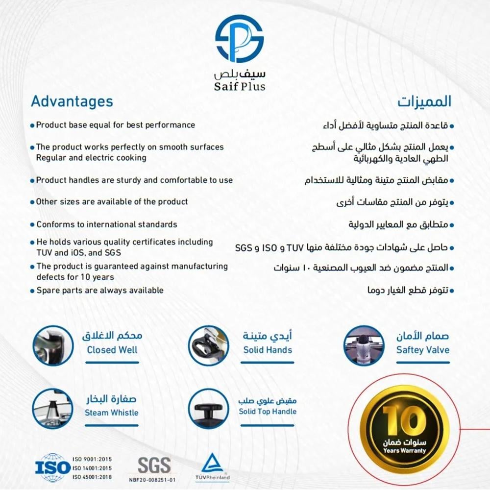 قدور ضغط المونيوم السيف بلص المقدمة من هوملي:مصنوع من الألومنيوم القوي والمتميز.أمان مثالي وجودة عالية وتصميم أنيق.يوفر الوقت والطاقة مع الحفاظ على جو...